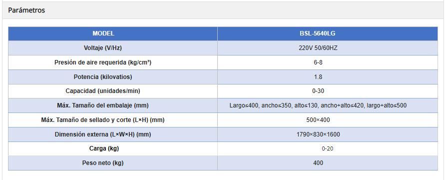- •Velocidad de sellado hasta 20 m/min